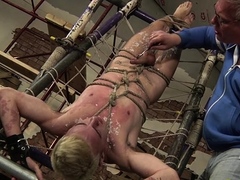 Wild dude treats nastily his gay boyfriend in a bondage act