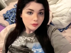 Trans solo student wanks big cock on webcam