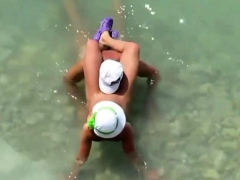 Mature couple sex in the sea