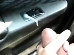 Hairy Latino bud jacks off in his car