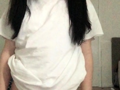 Amateur tranny in stockings solo masturbation