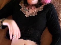 Shemale tranny enjoying solo masturbation